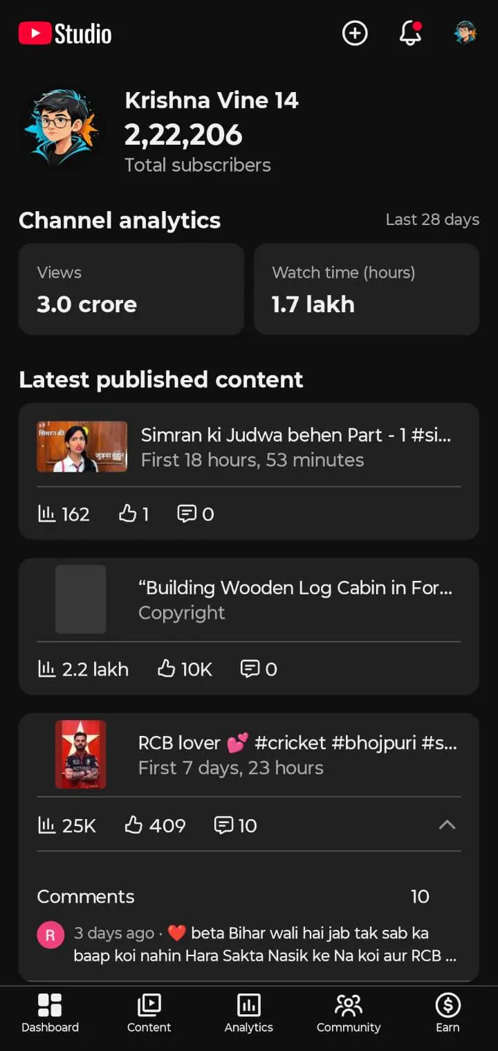 This is a high-performing viral YouTube Shorts channel with over 222K subscribers. The channel has generated more than 3 crore views in the last 28 days and 1.7 lakh hours of watch time. Multiple videos have crossed millions of views, especially in storytelling and engaging viral content format. The channel is highly active and currently trending, making it a strong asset for buyers looking for instant reach and growth.
